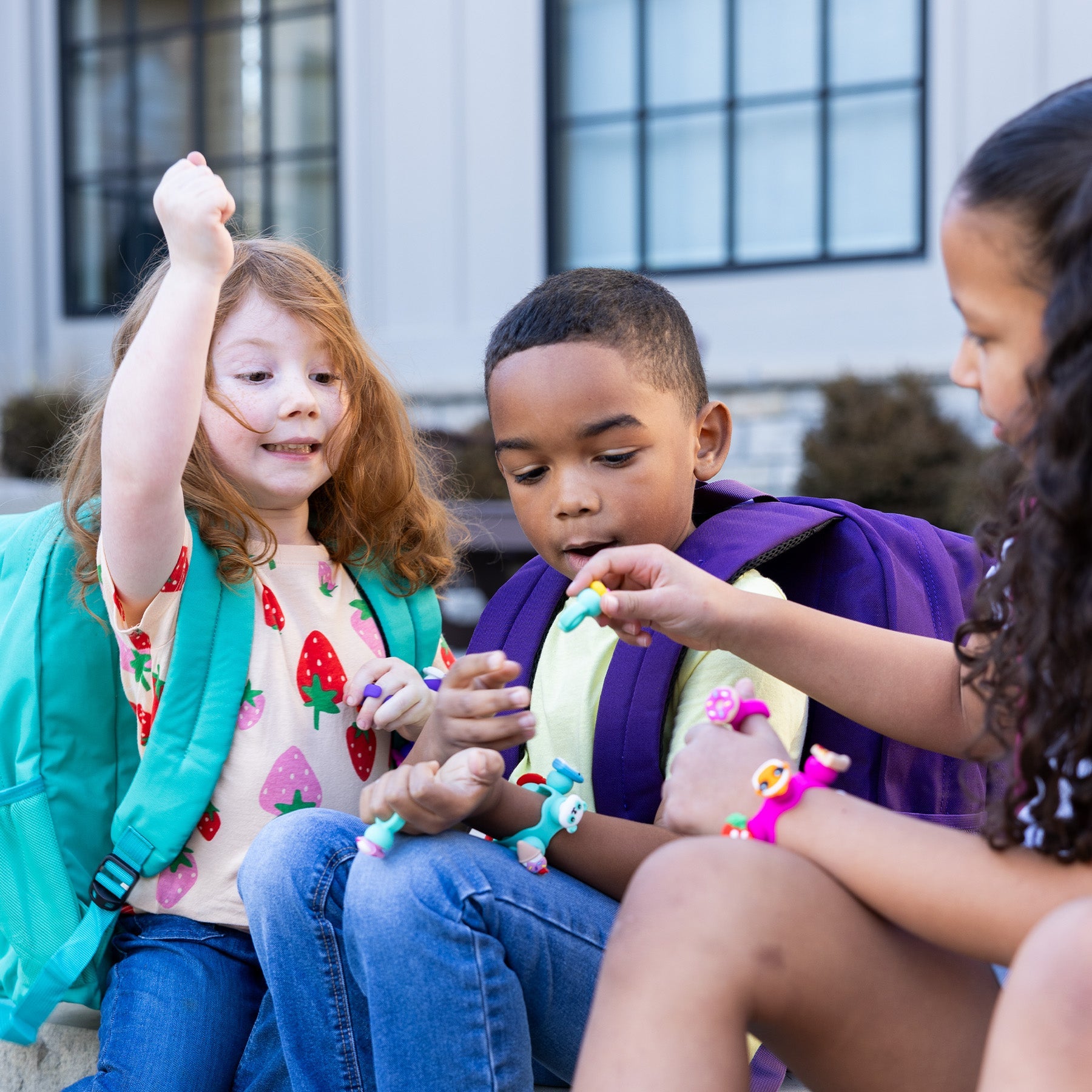 Wear them on your wrist, finger, backpack or bag — when you pull the charms out, they make the most satisfying “POP!” Each set comes with a bracelet, a ring and eight unique charms, ready for trading and customizing your look.